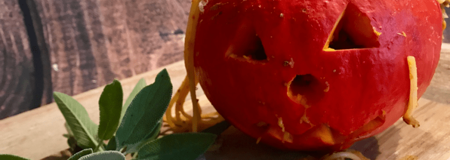 Zugegeben, ich bin ein Halloween-Muffel. Aber wenn mir das Gelegenheit gibt, irgendetwas Besonderes zu kochen oder zu backen, soll mir Halloween auch recht sein. Das Kürbismonster frisst hier leckere Spaghetti mit einer Soße aus Hackfleisch und ofengeröstetem Kürbis. Es schmeckt nicht nur dem Monster... Zutaten (für ca. 2-3 Portionen): ½ mittlerer Hokkaido-Kürbis 1 große Petersilienwurzel… Weiterlesen Pasta mit Hackfleisch-Kürbissoße – oder: Das spaghettifressende Kürbismonster