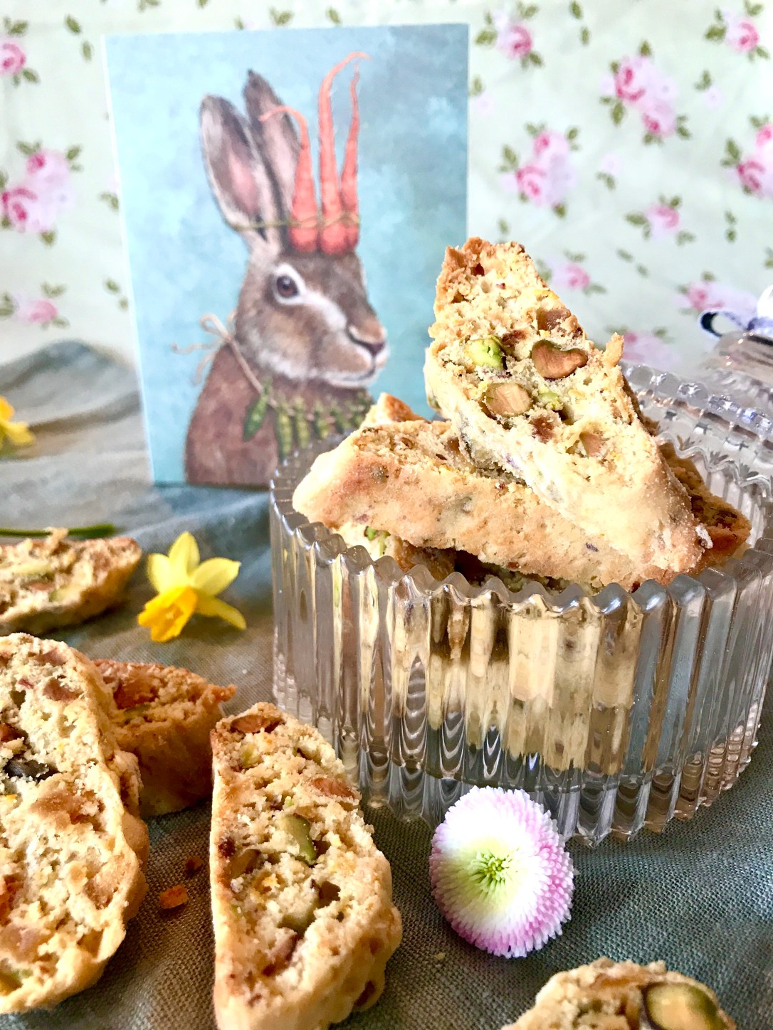 Trotzdem dachte ich mir, ich backe ihm noch ein paar Cantuccini. Die lege ich dann entlang seines Weges zu mir, damit er auch das bereitgestellte Osternest findet und es reichlich füllt 🙂