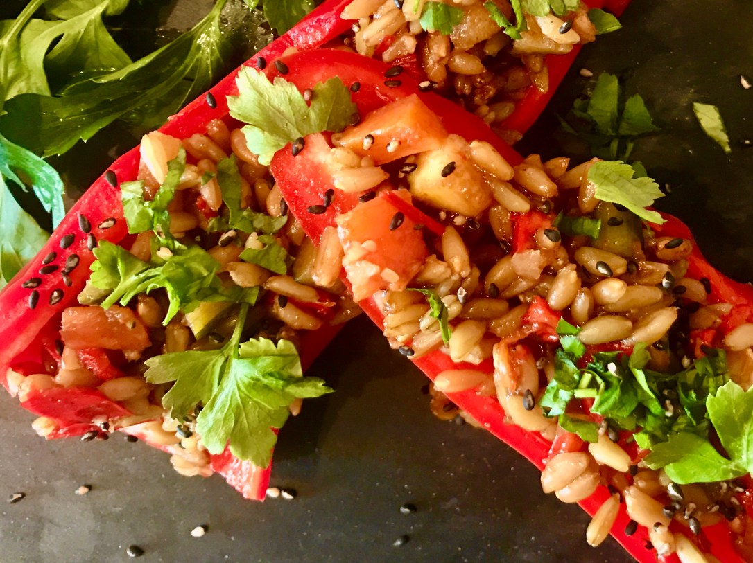 Nochmal ein Rezept, dass ich auf vielfachen Wunsch veröffentliche. Ein Salat aus Dinkelreis, gedünstetem Gemüse und Sesam-Balsamico-Dressing. Für den einen oder anderen mag sich das seeeeehr gesund anhören. Stimmt! Aber der Salat ist genauso gesund wie lecker.