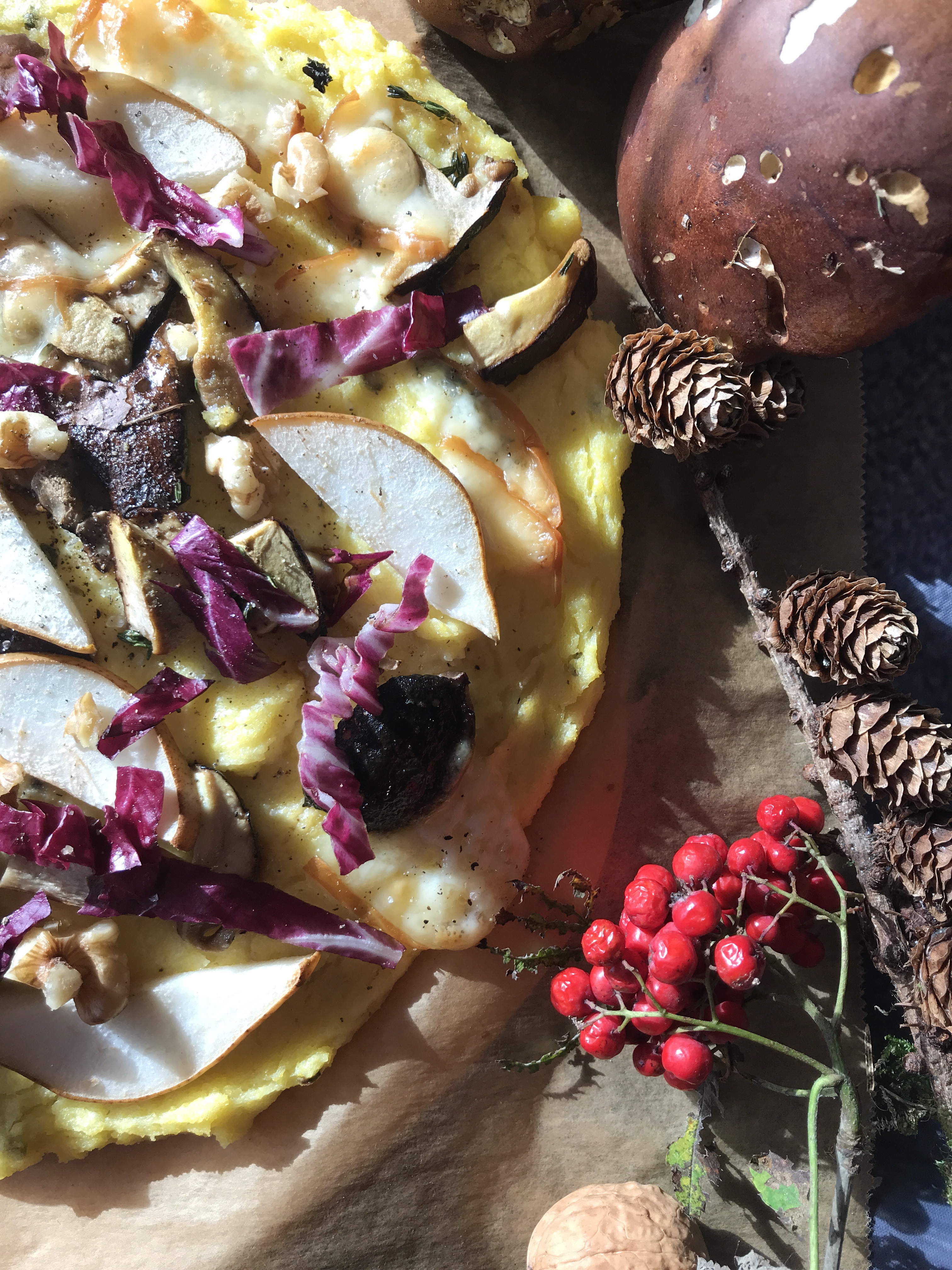Nachdem die Ausbeute nicht so groß war, verzichtete ich auf die Rahmschwammerl mit Knödel, auf die ich mich schon so gefreut hatte. Aber: es war genau die richtige Menge an Schwammerl, um eine leckere Pizza mit Pilzen und Birnen zu machen. Scamorza (geräucherter Mozzarella) war das geschmackliche i-Tüpfelchen.