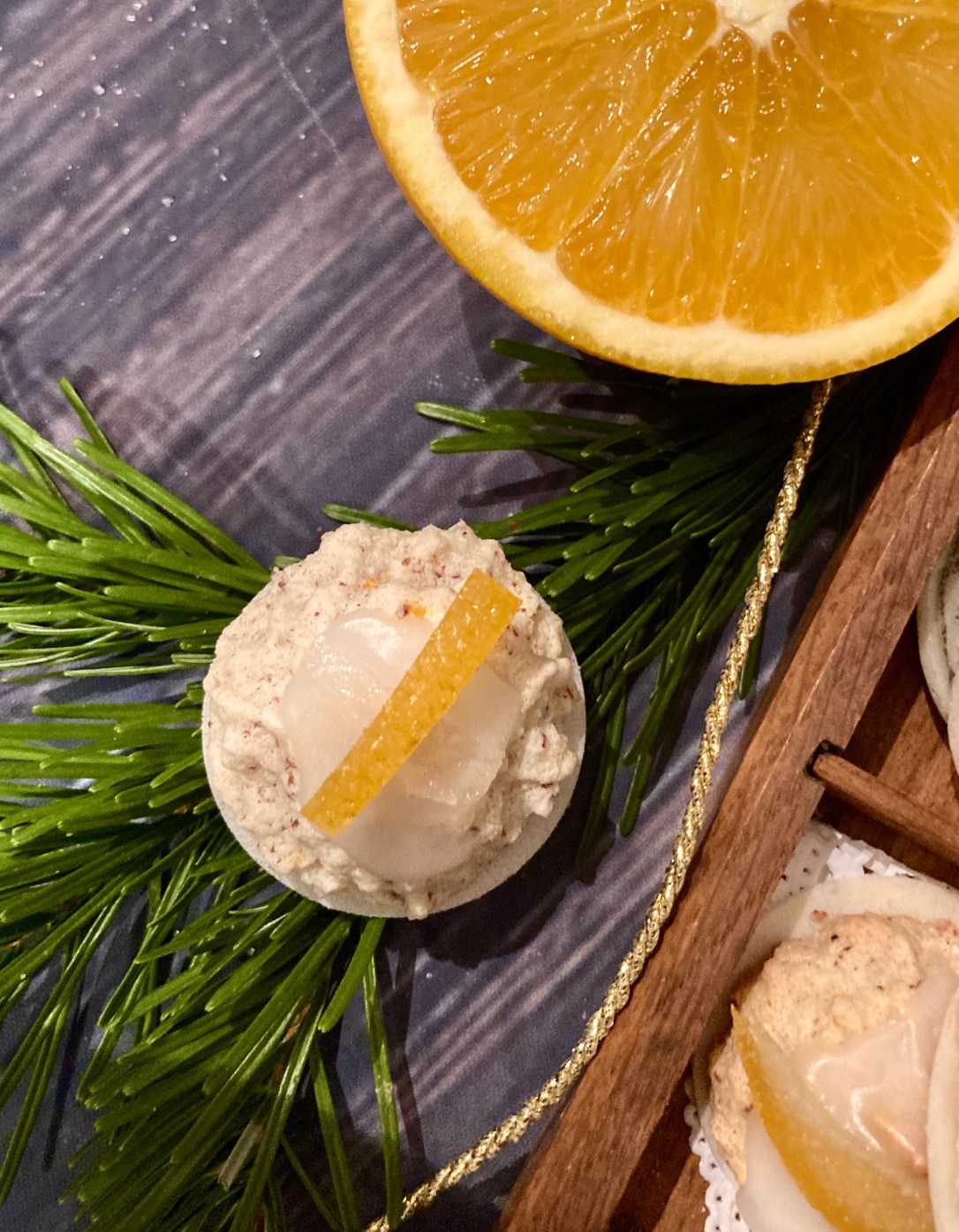 Luftig, locker und herrlich aromatisch sind sie, die feinen Orangenmakrönchen. Die Glasur wird mit Cointreau verfeinert, das Krönchen haben die Makrönchen aus kandierten Orangen.