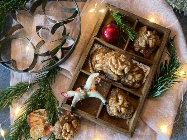 Marzipan, Haselnüsse und Ahornsirup vereint, gekrönt von einer Walnuss. Was braucht man mehr?