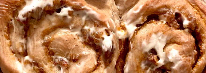 Kürbis-Gewürz-Schnecken mit Pecannüssen und Frischkäse-Glasur
