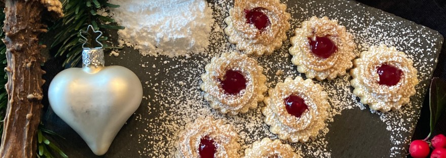 Ist das nicht ein schöner Name? "Zimtkrapferl" - da schmilzt schon das Wort auf der Zunge. Und erst die Krapferl! Die Krapferl sind kleine gespritzte Tupferl aus Nussteig, die mit Marmelade zusammengesetzt werden. Ob Aprikose, Quitte oder Johannisbeere - da schmeckt alles dazu. Bei mir war es dieses Mal Quittengelee. Anfangs war es ein bisschen… Weiterlesen Zimtkrapferl