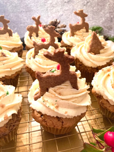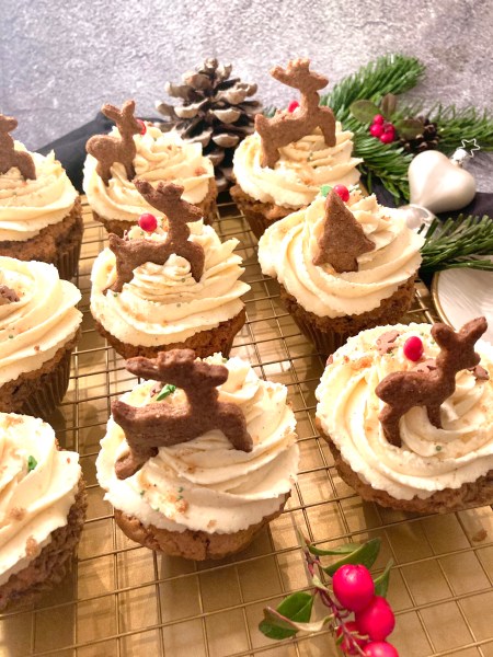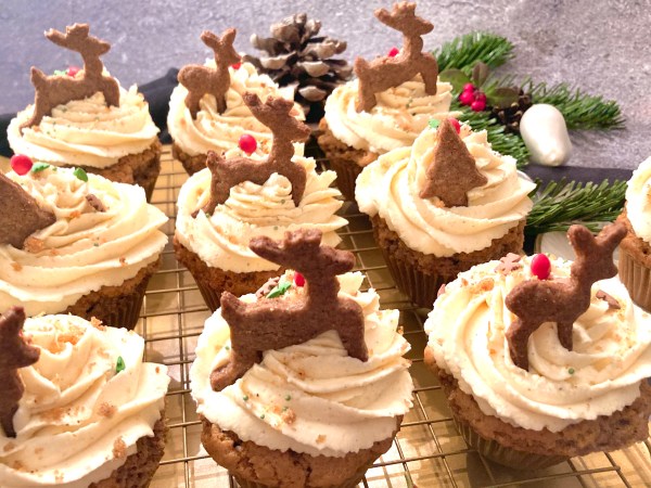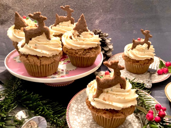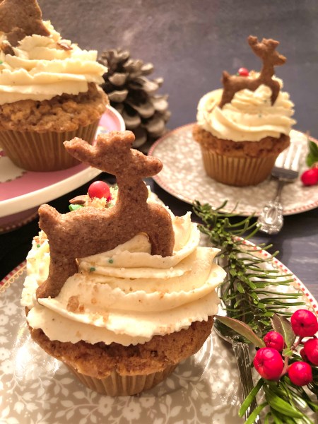 Bei mir gibt es Spekulatius-Cupcakes. Cupcakes machen wenig aufwand, haben aber immer eine große Wirkung. Wer keine Spekulatius hat, kann auch Lebkuchen, Zimtsterne oder Vanillekipferl nehmen, dann würde ich das Spekulatius-Gewürz im Rezept aber entsprechend anpassen, also Lebkuchengewürz, Zimt oder Vanille.