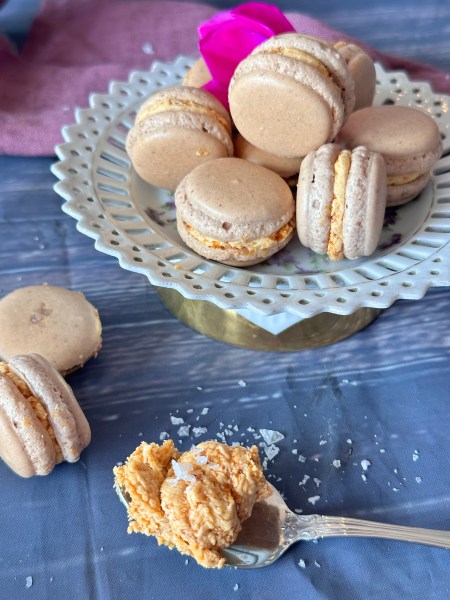 Heute gibt es eine Füllung aus Butter und Salzkaramell. Ich finde, das passt wunderbar in die Jahreszeit. Von der Füllung bleibt zwar was über, aber die Hälfte der Menge zubereiten lohnt sich fast nicht. Ihr könnt die Füllung ohne Probleme 3 Wochen im Kühlschrank aufbewahren und entweder auf kleinen Küchlein verteilen, als Muffinfüllung oder Cupcake-Topping verwenden oder Ihr backt einfach nochmal eine Ladung Macarons.