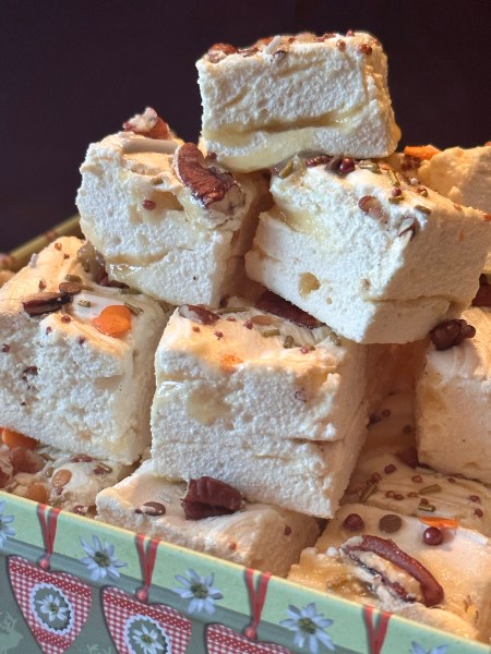 Eigentlich mag ich gar keine Marshmallows. Die gekauften sind mir zu süß und an die Konsistenz kann ich mich nicht gewöhnen. Aber ich war neugierig, ob sowas zu Hause auch gelingt. Ja, sie werden was! Und sie schmecken auch 🙂
