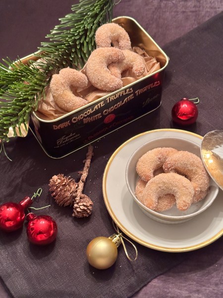 Die Kipferl am Besten noch 1 Woche in einer Blechdose verpackt durchziehen lassen, dann entwickeln sie nochmal mehr Aroma.