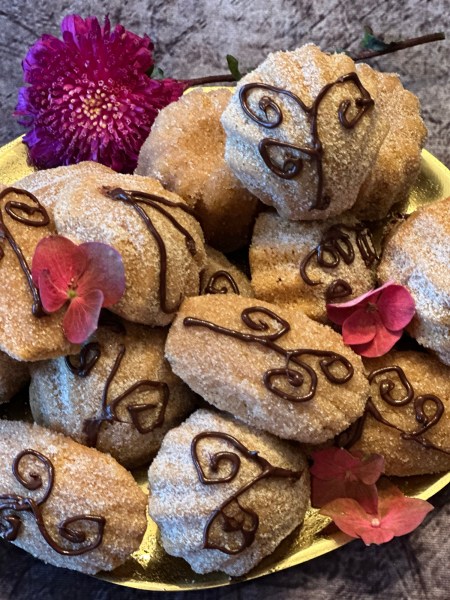 Die fertigen Küchlein kurz abkühlen lassen, aus den Förmchen lösen und mit der warmen Nußbutter rundherum bepinseln. Gleich im Gewürzzucker wälzen.