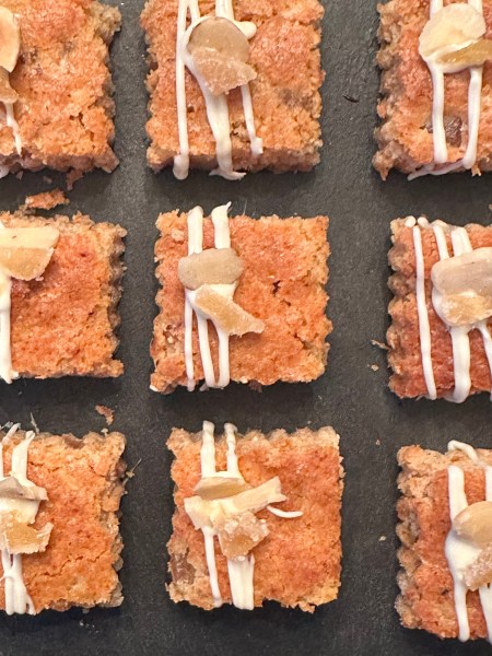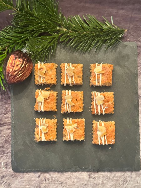 Und obwohl der Kuchen in kleine Würfel geschnitten wird, hält er sich in einer Blechdose sehr lange frisch. Nachbacken lohnt sich zu jeder Jahreszeit!