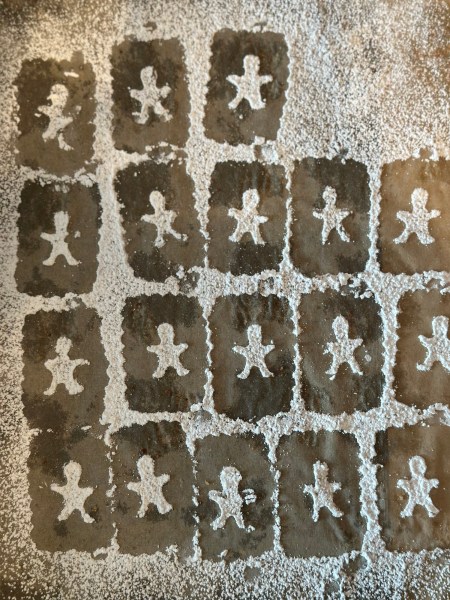 Den Backofen auf 180 Grad (Umluft) vorheizen. 3-4 Backbleche mit Backpapier belegen. Den Teig auf der bemehlten Arbeitsfläche ca. 3mm dünn ausrollen und Formen ausstechen. Aus der Hälfte der ausgestochenen Formen in der Mitte kleine Figuren, Herzen oder Löcher ausstechen. Die Plätzchen im vorgeheizten Ofen ca. 8-10 Min. backen und vollständig auskühlen lassen.