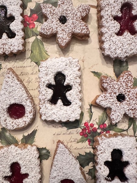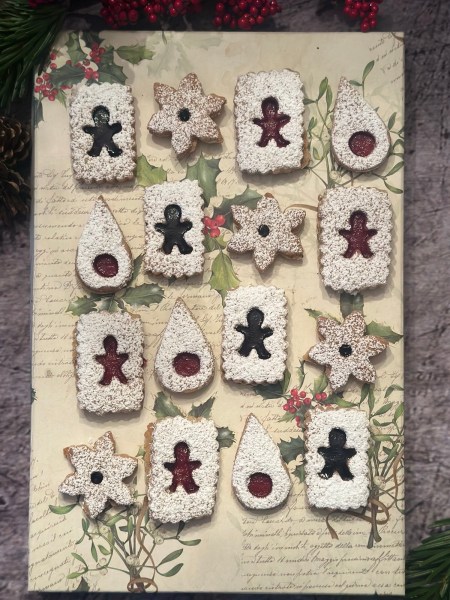 Bei der Marmelade kann man natürlich nehmen, was man will oder hat. Da ich über zuverlässige Johannisbeer- und Quittenquellen verfüge, werden bei mir die meisten Plätzchen eben mit solchem Gelee gefüllt. Aber manchmal mag ich auch mal Abwechslung im Plätzchen. Wer also nächstes Jahr Aprikosen oder Marillen abgeben möchte – ich nehme sie gerne.