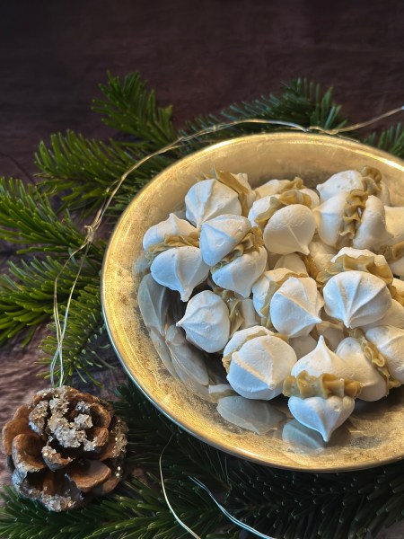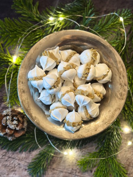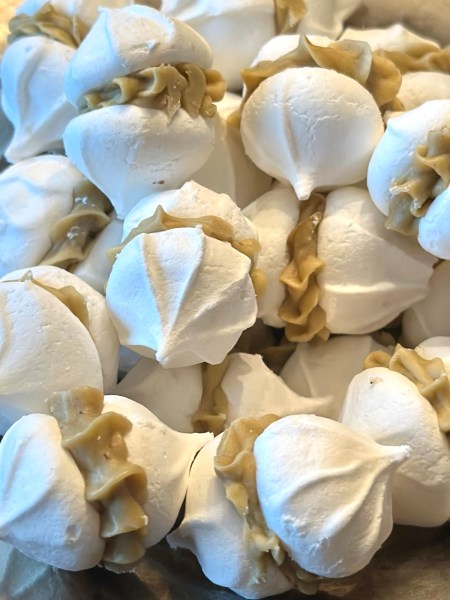 Hmmmm – das ist Engelsfutter, das sage ich Euch. Kleine Baisers, die mit einer Creme aus Pistazien und weißer Schokolade zusammengesetzt werden.