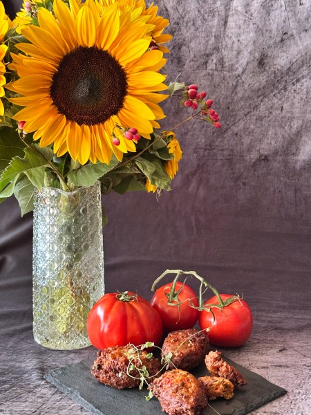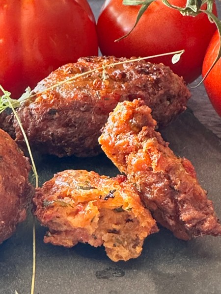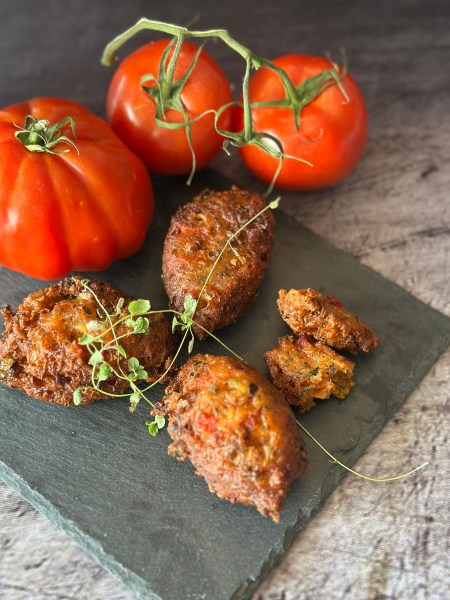 Eigentlich ein Spätsommerrezept, da es sich anbietet, die frisch geernteten Tomaten zu verarbeiten. Aber sie schmecken zu jeder Jahreszeit, meine Tomaten-Fetties. Eigentlich sind es Tomatenbratlinge oder Tomatenköfte oder wie ihr sie auch immer nennen wollt. Aber weil sie im Fett herausgebacken werden, nenne ich sie liebevoll Tomaten-Fetties. Und sich schmecken ja soooooooo gut!