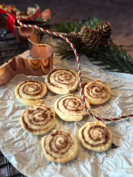 Ich mag es ja gerne, wenn ich mich an Gebäck so richtig verausgaben kann. Nicht beim essen – da leider auch… – aber ich meine beim Dekorieren. Da noch ein Zuckerguss, hier noch ein Zuckerkügelchen. Aber ab und zu bin ich auch froh, dass die Plätzchen, so wie sie aus dem Ofen kommen, dann auch fertig sind. So wie diese Zimtschneckenplätzchen.