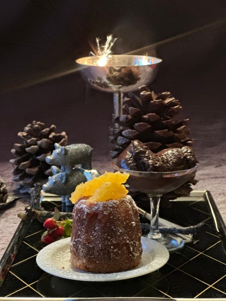 Was bedeutet dieser philosophische Exkurs nun für Euer Silvesterdessert? Nun, aus meinen Erfahrungen kann ich sagen: Schokolade passt gut zu Rum und Orange, egal wie viel man gegessen hat – Eis geht immer noch rein und: Canelés sind unschlagbar köstlich.
