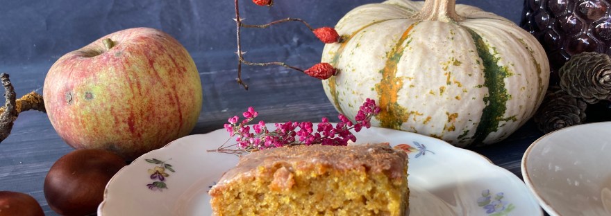 Unglaublich guter und saftiger Kürbis-Apfel-Kuchen mit Calvados-Glasur