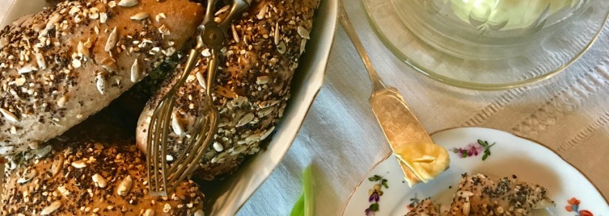 Erfahrene Brot- und Semmelbäcker werden sich jetzt wundern, wenn sie das Rezept lesen. Denn in den Semmelteig kommen Eier. Ja, wirklich. Sie machen eine herrliche Textur. Zutaten (für ca. 10 Stück): 250g griffiges Mehl (Type 550 oder 00er Pasta-Mehl) 250g Roggenmehl 1 TL Salz 250g Milch 1 EL Honig 3/4 Würfel Hefe 50g Rapsöl 2 Eier… Weiterlesen Roggen-Weizen-Semmerl mit Kerndl drauf