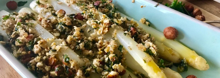 Zugegeben, so gekochter Spargel mit Bratkartoffeln und Schnitzel ist sehr lecker. Aber immer nur gekochter Spargel mit Butter oder Hollandaise ist auf Dauer langweilig. Kein Wunder, dass man dann diesen köstlichen Spargel bald nicht mehr sehen kann. Aber Spargel kann man so abwechslungsreich zubereiten! Es gibt viele Begleiter, die den feinen Spargelgeschmack noch besser hervorheben.… Weiterlesen Spargel mit Zitronen-Haselnuss-Kruste