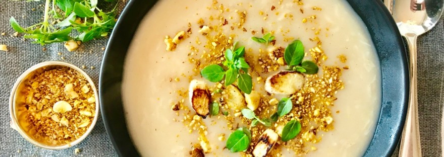 Spargelsuppe mit Reis und Haselnuss-Cashew-Dukkah