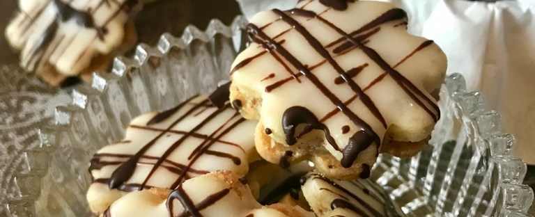 Ich könnte ja noch viel mehr Spritzgebäck machen. Mit Nüssen, Marzipan, Eierlikör etc. Vielleicht mache ich das heuer noch. Aber erst kommt das Schokospritzgebäck. Man kann die Stangen einfach so lassen oder jeweils 2 Stangerl mit Marmelade zusammenkleben. So schmecken sie mir am allerallerbesten. Zutaten (für ca. 1 Blech, wenn man sie zusammenklebt): 150g Butter… Weiterlesen Schokospritzgebäck
